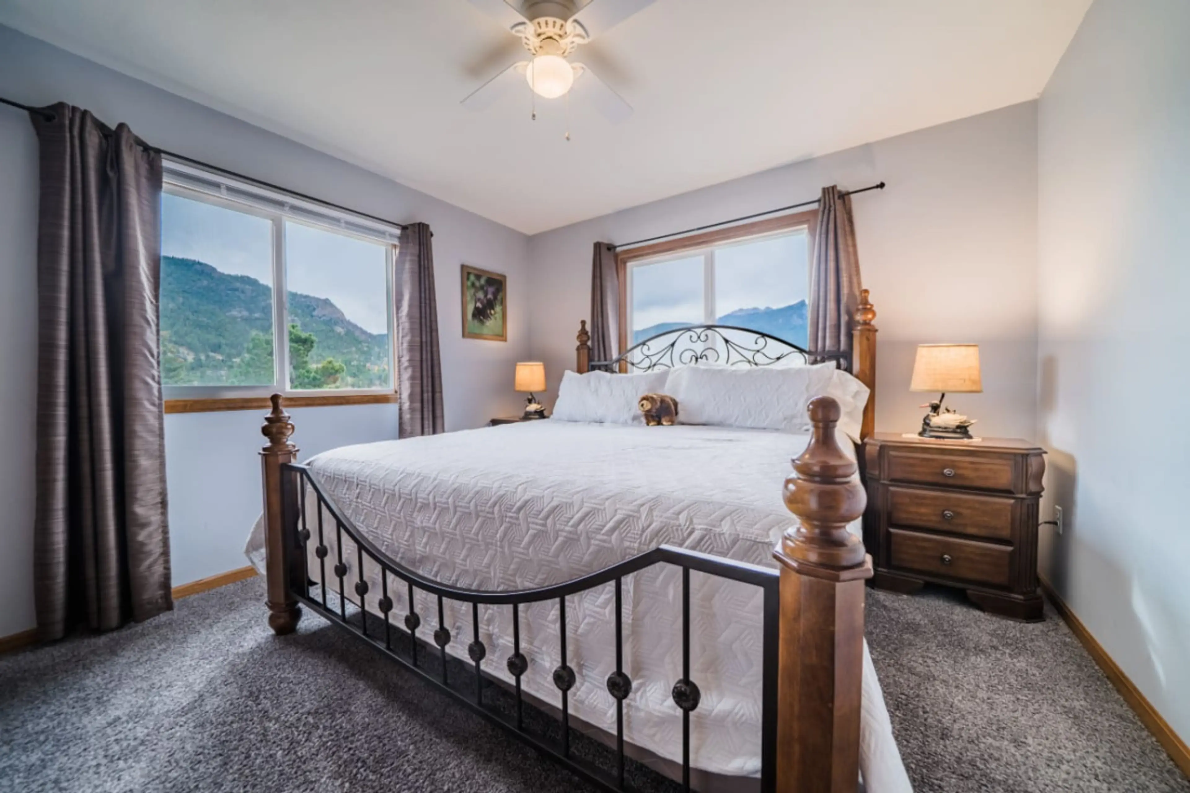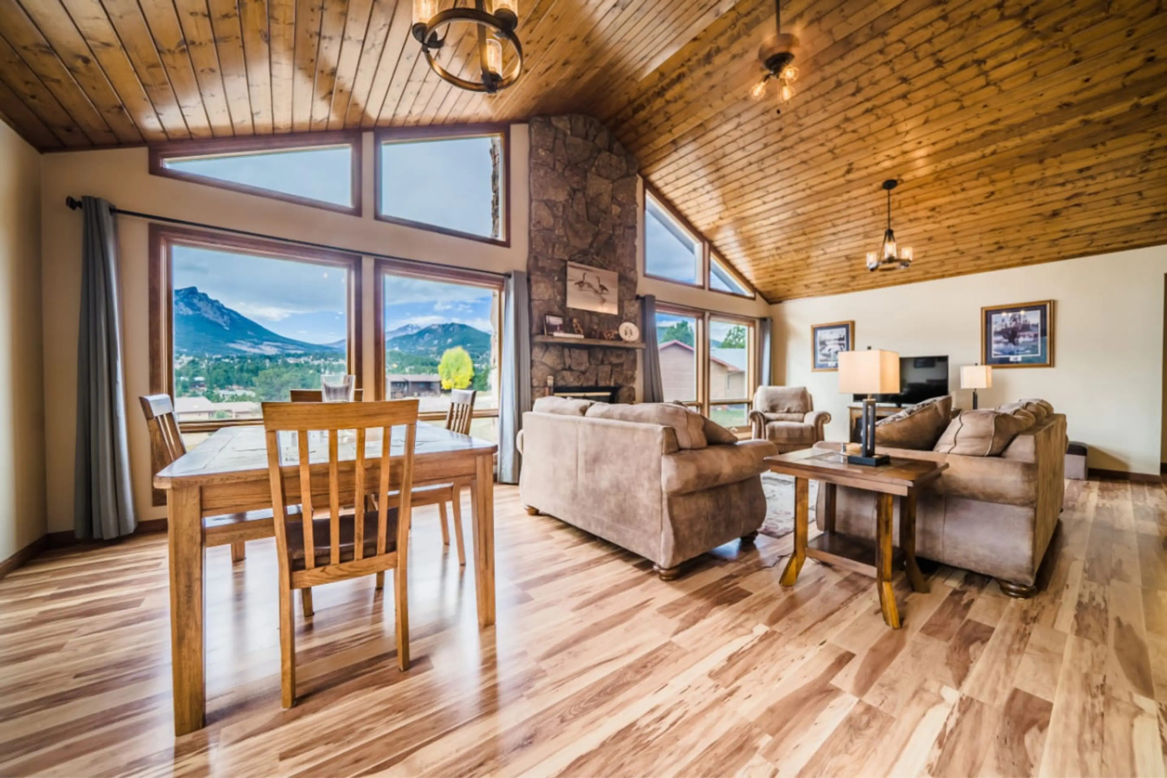 Giant picture windows in the living room frame sweeping mountain views, STR Permit 3123! Watch wildlife wander by and unwind on a sunny deck near downtown Estes and Rocky Mountain National Park. “One of the best rentals we've had in 15 years.” — Pat - Quiet neighborhood close to trails and town. -...