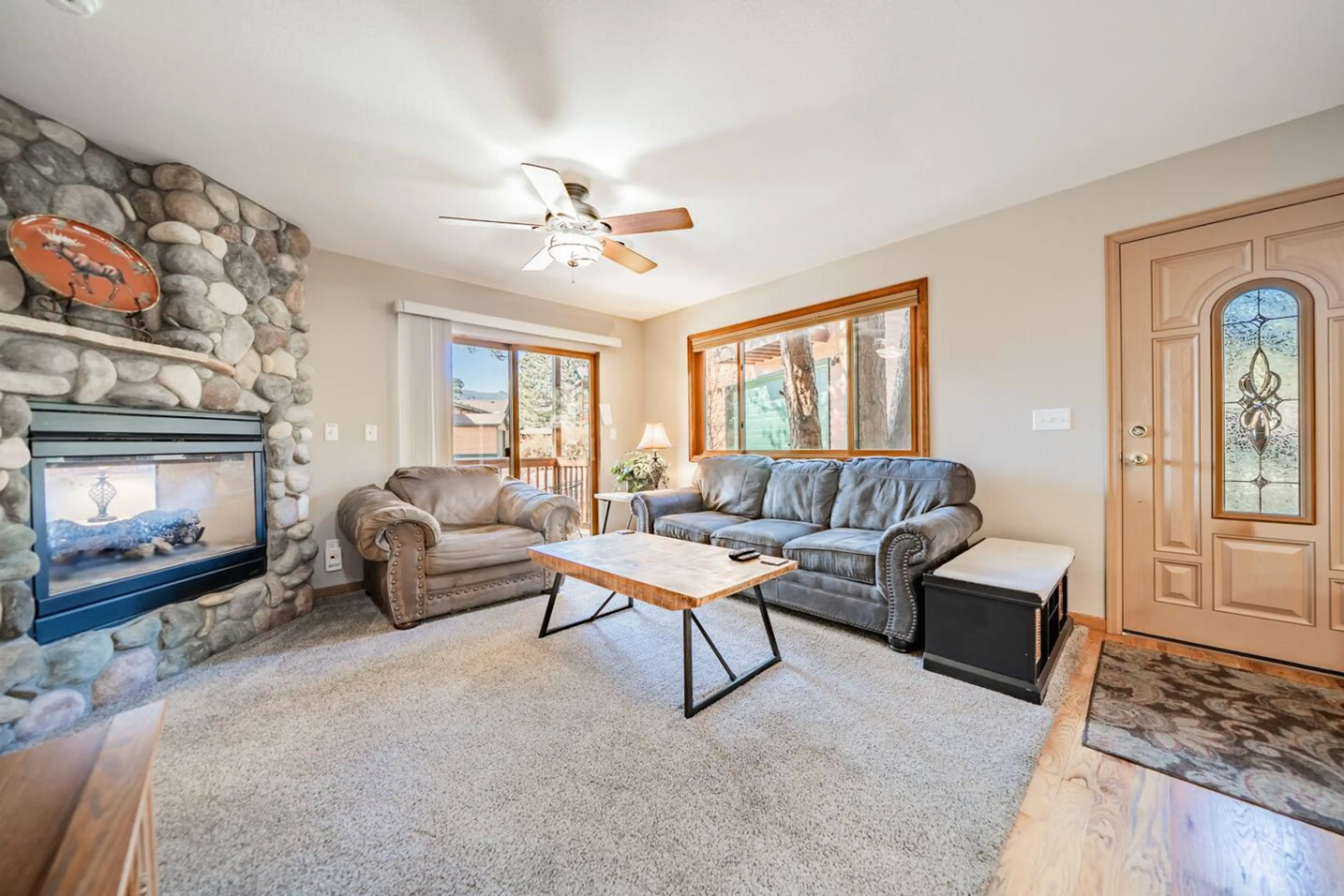 A spacious mountain home for families near downtown Estes Park (Registration 6034). Enjoy hardwood floors, a cozy fireplace, and a stunning master suite with a two-sided stone hearth and private deck. “Probably the best place we’ve stayed!” — Shelby. Quiet wooded setting close to Rocky Mountain ...