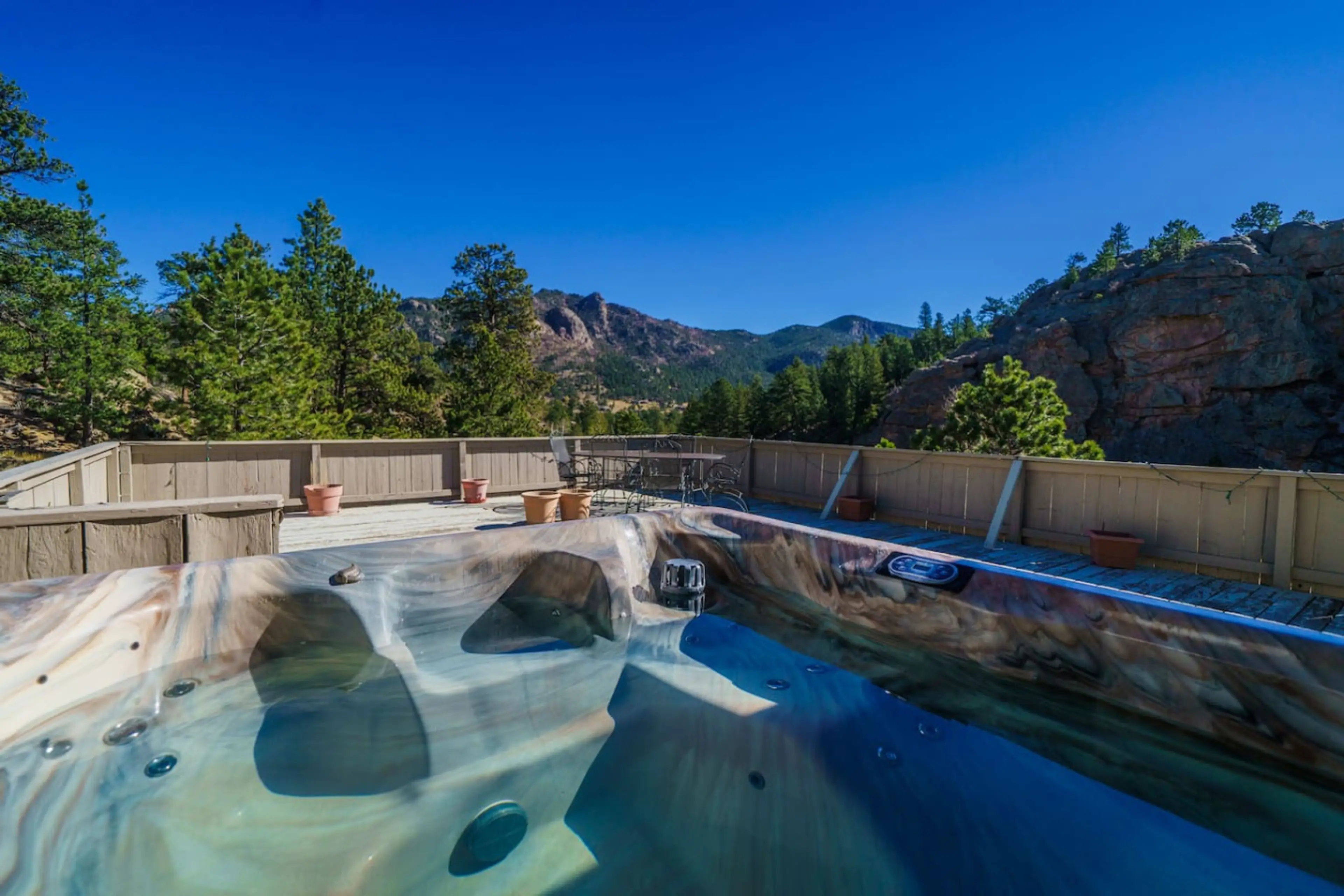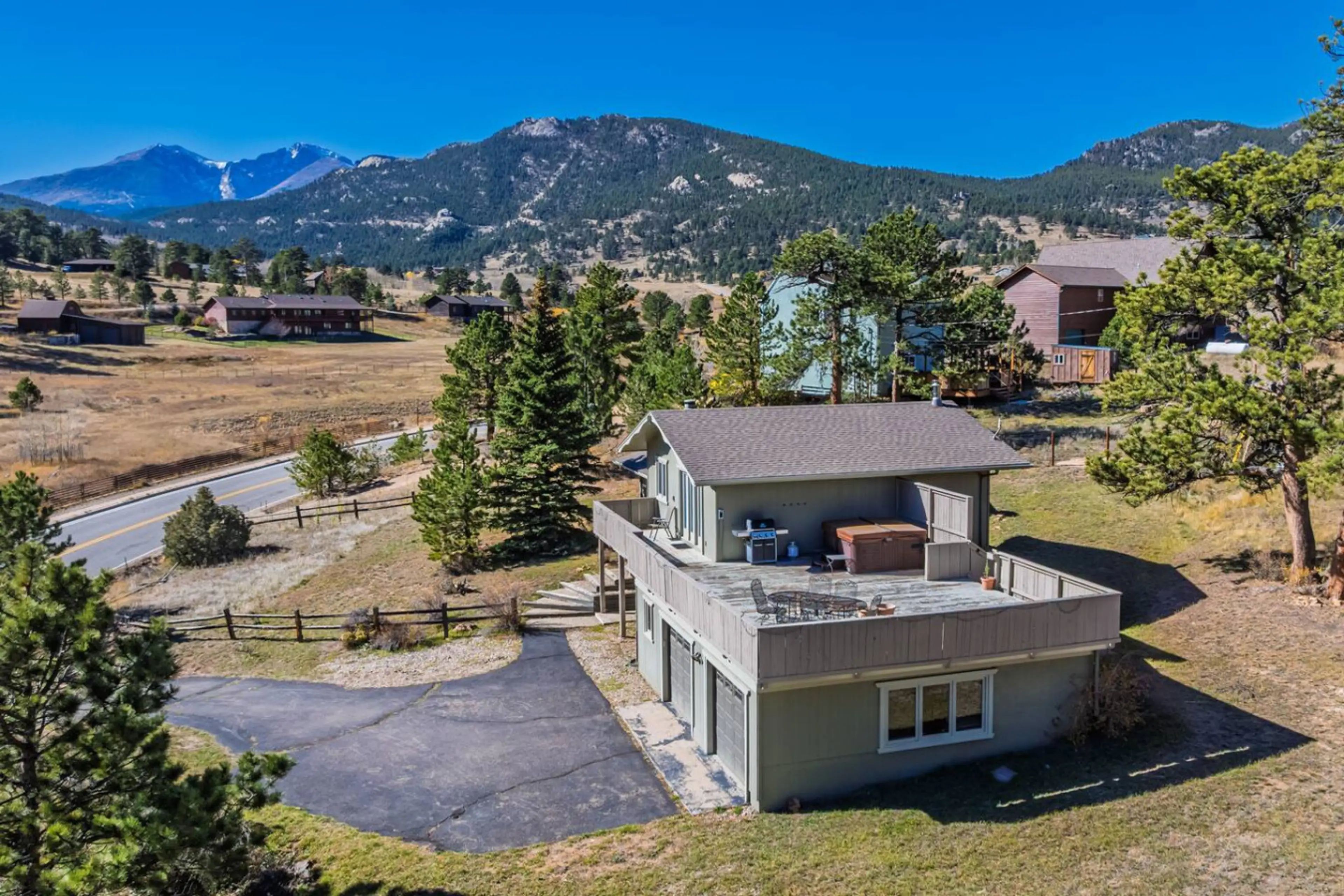 Hot tub, great views, huge deck. Near town, RMNP