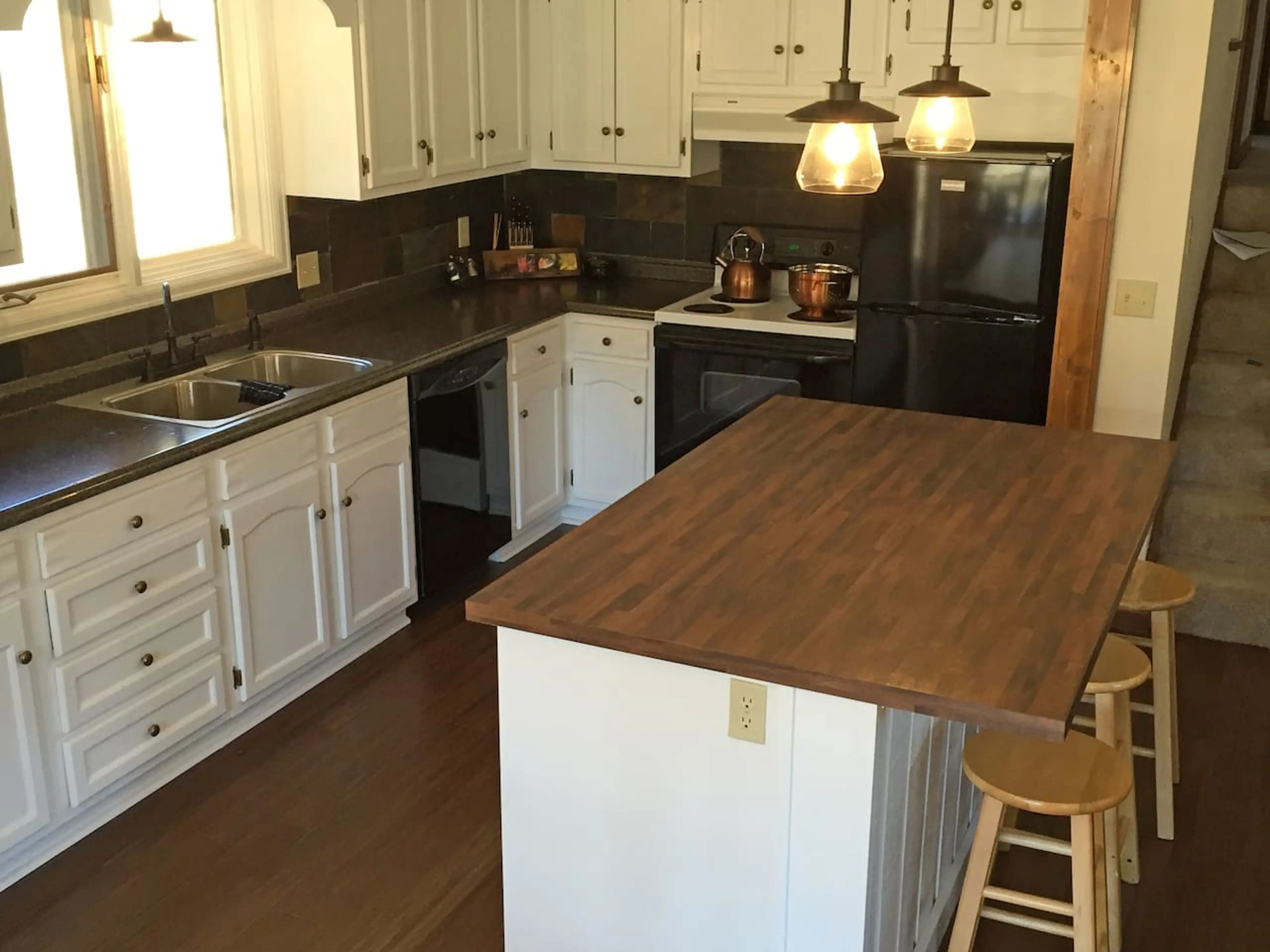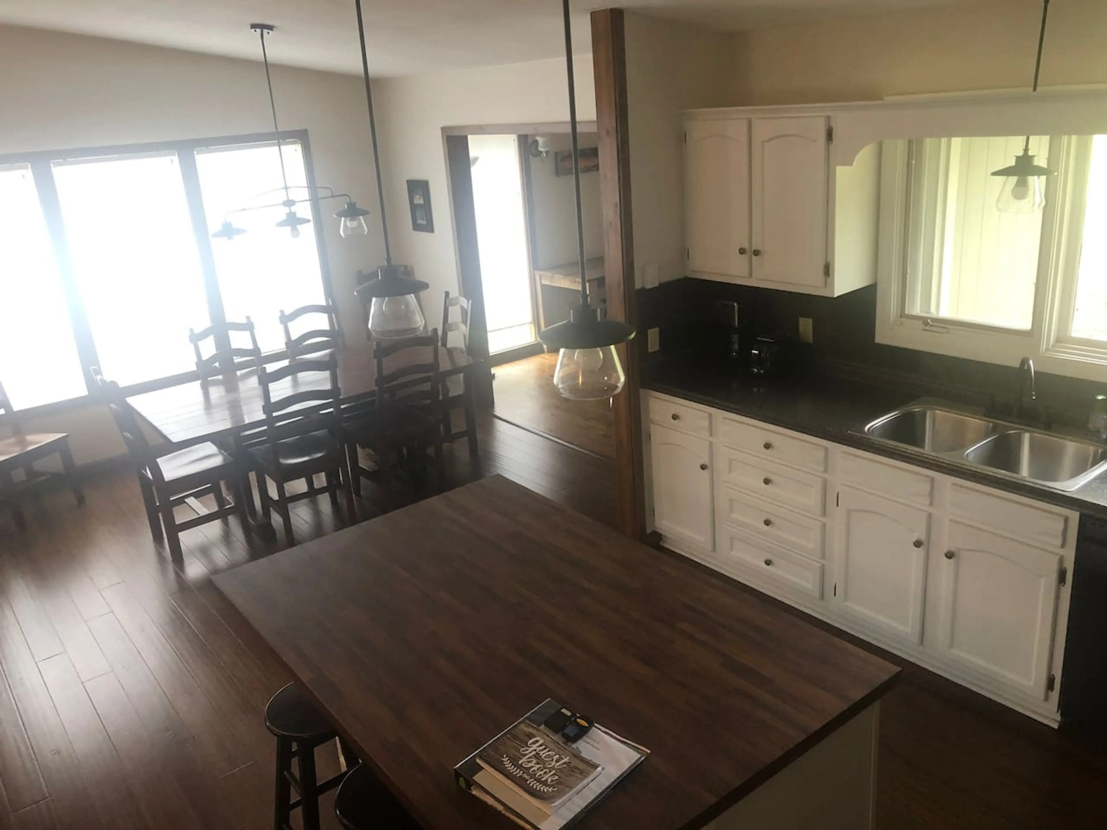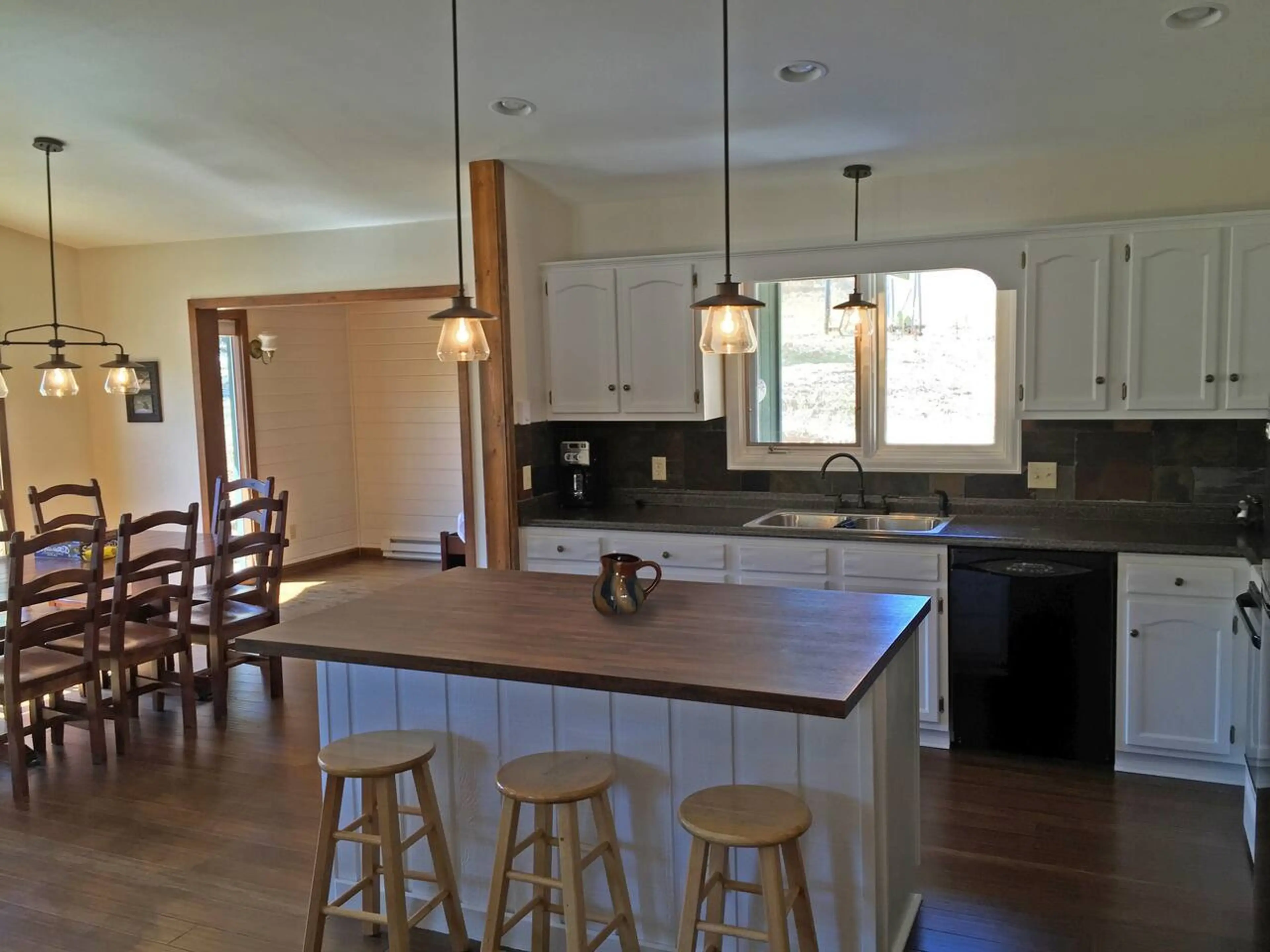We love the new look of our remodeled kitchen/living room/dining room. The newly opened floor plan, hardwood floors, tile work, etc. have greatly improved the appeal and usefulness of our tri-level home. There's plenty of room to gather at the kitchen table (seats 8), around the fireplace or TV. Gre...